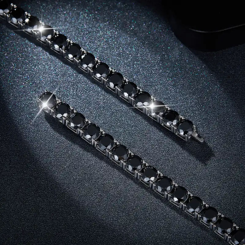 Discover bold sophistication and modern street-style luxury with our Hip Hop Black Diamond Tennis Bracelet. Designed for those who embrace confidence, shine, and individuality, this bracelet redefines classic elegance with a strong hip-hop edge. Each piece is crafted from genuine 925 sterling silver and set with premium black Moissanite stones, offering the same brilliance and fire as natural diamonds, but with a striking dark allure.